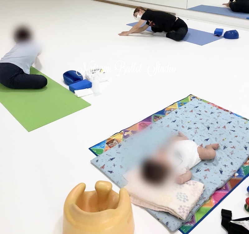 簡単なストレッチとバレエの動きを取り入れたエクササイズを行うママの為のクラスです。